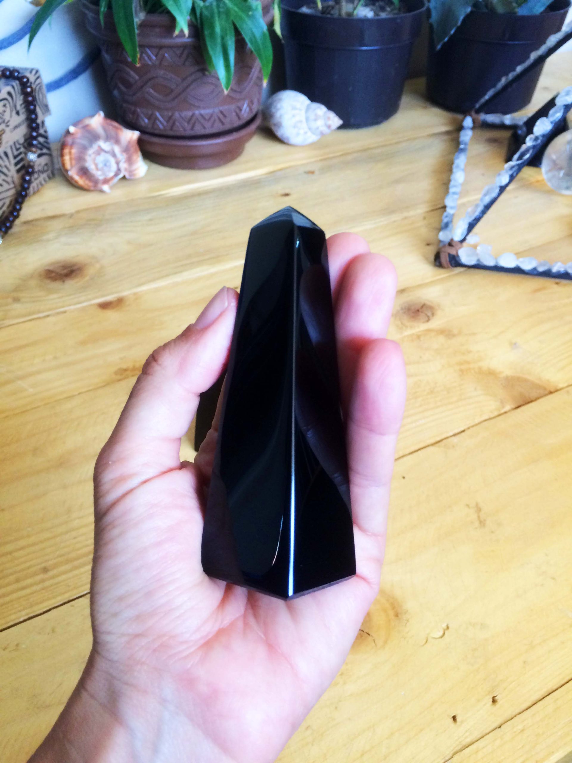 Obelisks are made to absorb and project energy. They are a generator of positive energy and clears bad vibrations in the area where it is placed. This obelisk supports people in their spiritual goals by using the energy in their meditation practices. Placing it somewhere helps clear negativity at home and in the office. It is an excellent desk companion, or as part of your spiritual altar. The obsidian obelisk has powerful metaphysical properties that will help protect you against negativity. The energy of the obelisk can stimulate the gift of prophecy and can increase precognition.